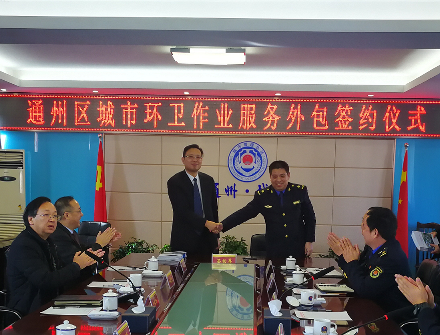 12月24日上午,通州區環衛作業市場化運營項目簽約暨南通天宏環境服務有限公司掛牌儀式在區城管局舉行。區城管局、國資辦、中國天楹、圓宏集團等相關部門領導應邀出席儀式。