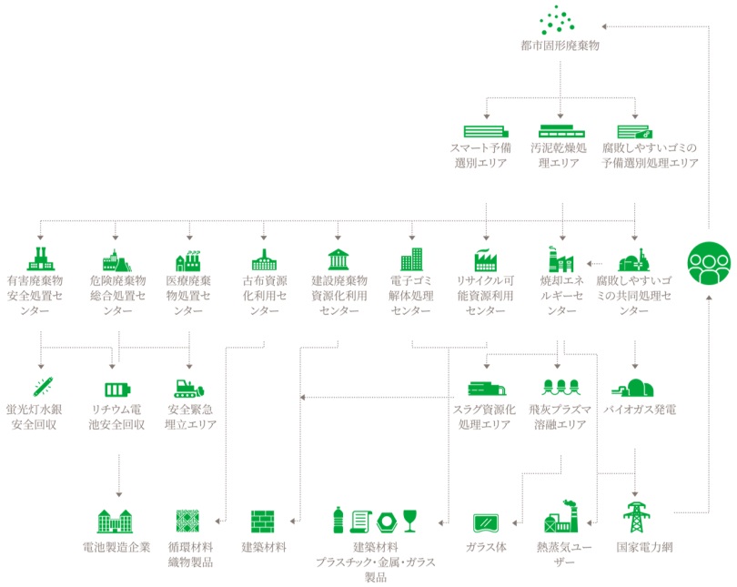 資源循環(huán)利用基地(統(tǒng)合資源リサイクル施設)はスマートシティ構築の重要機能區(qū)畫であり、都市廃棄物管理の精密化レベル向上と廃棄物処理施設の『NIMBY(Not In My Back Yard)問題』解消に決定的な役割を果たします。